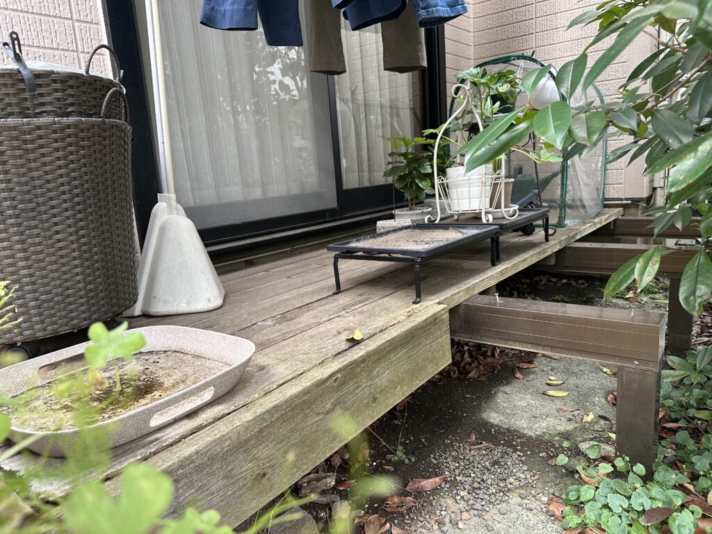 古くなって傷んだ既存デッキは床板が一部外れて危険な状態でした