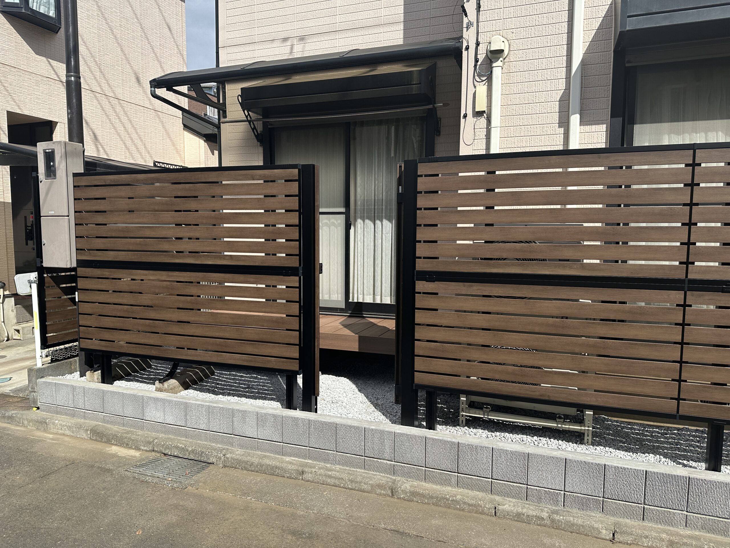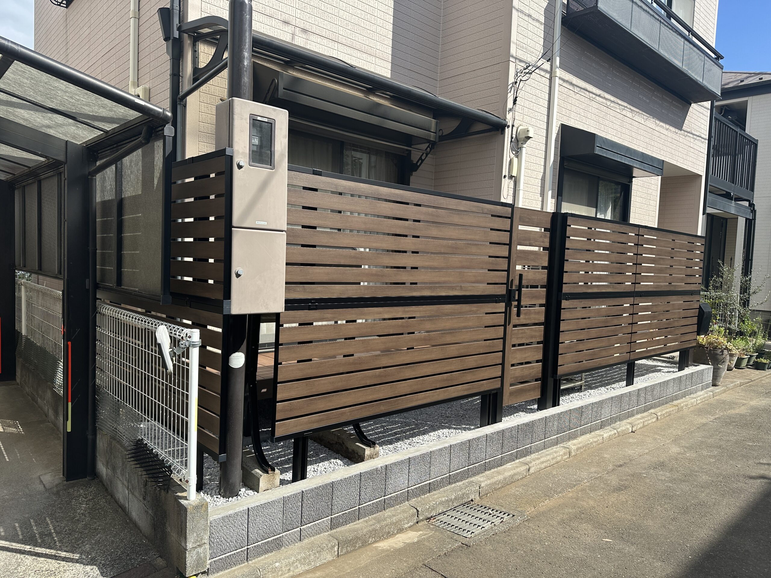 アルミ製の目隠しフェンスを採用したので今後はメンテナンスフリーになります