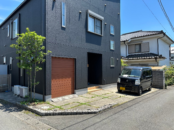 デザイン性の高い車庫目地の雑草対策も同時に行いました