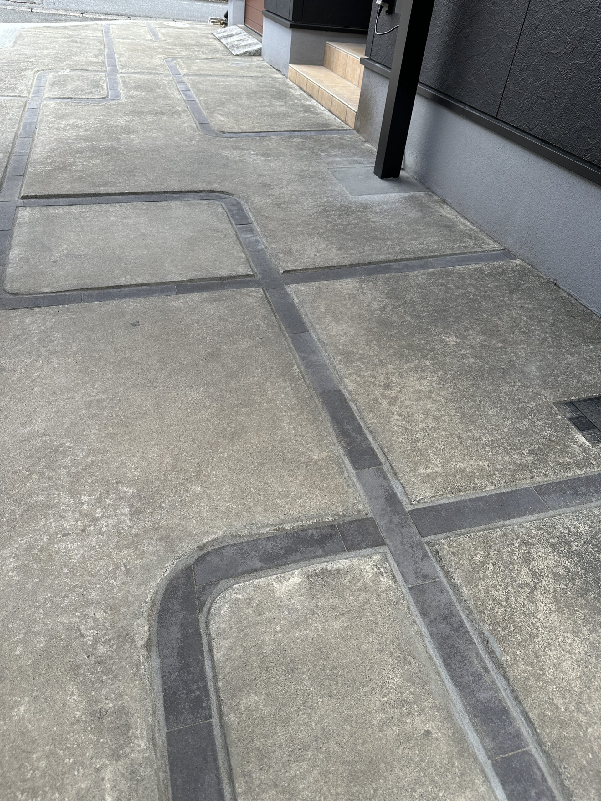 デザイン性の高い車庫目地の雑草対策も同時に行いました