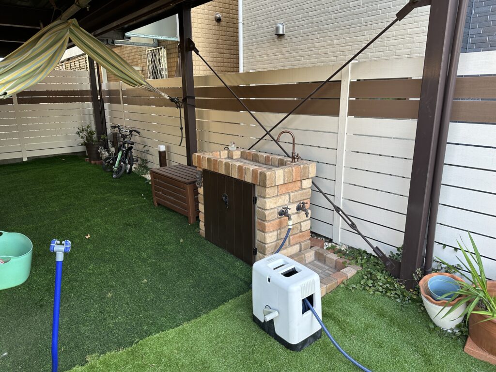 お庭に隣接する既存車庫奥に水道が欲しいというご要望でした