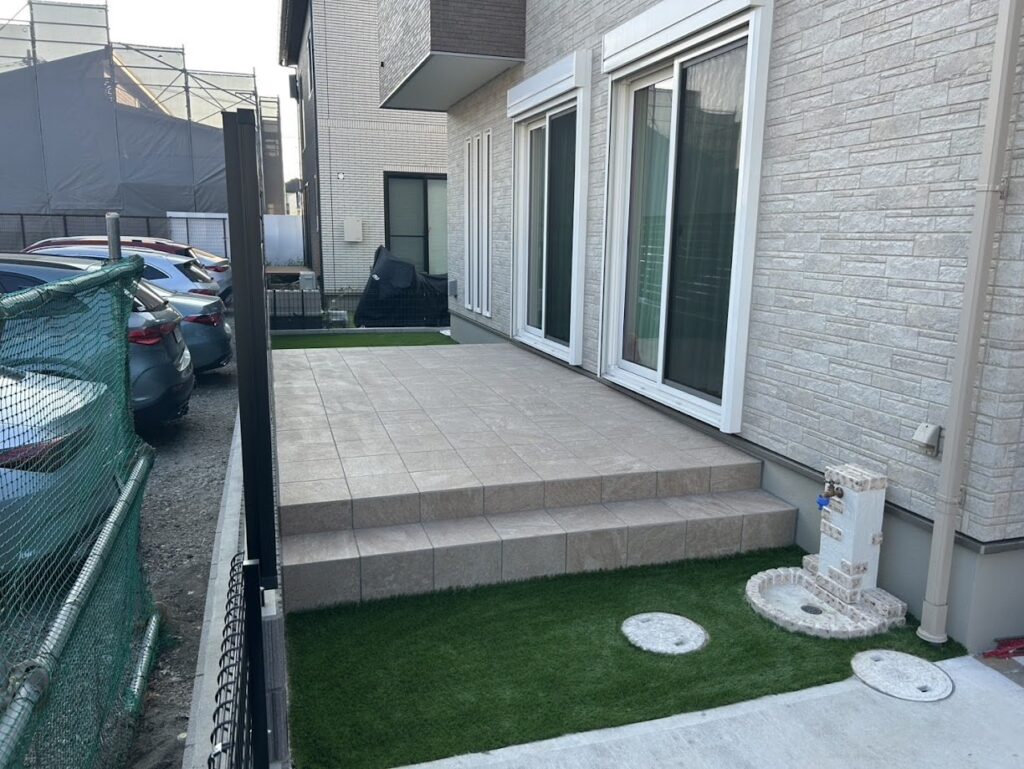 掃き出し窓に合わせてタイルテラスを施工しました!