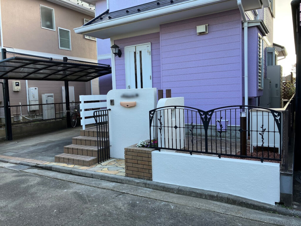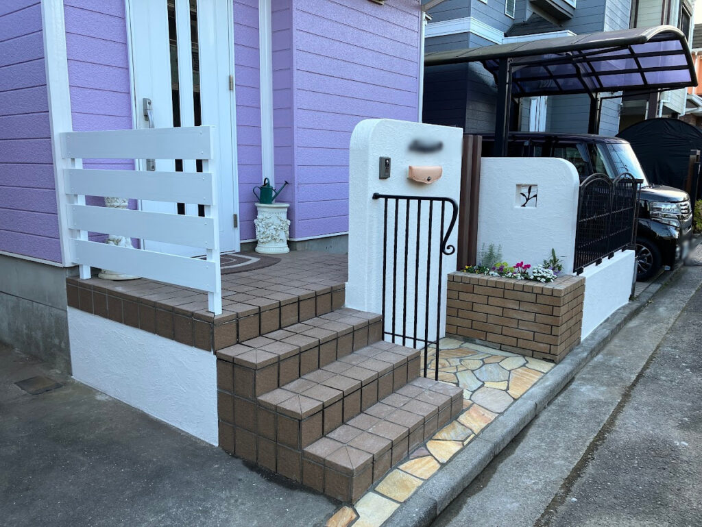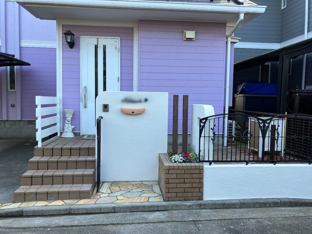 土留ブロック→高さをプラスし、門周りと同色の塗り仕上げに。より統一感がアップしました