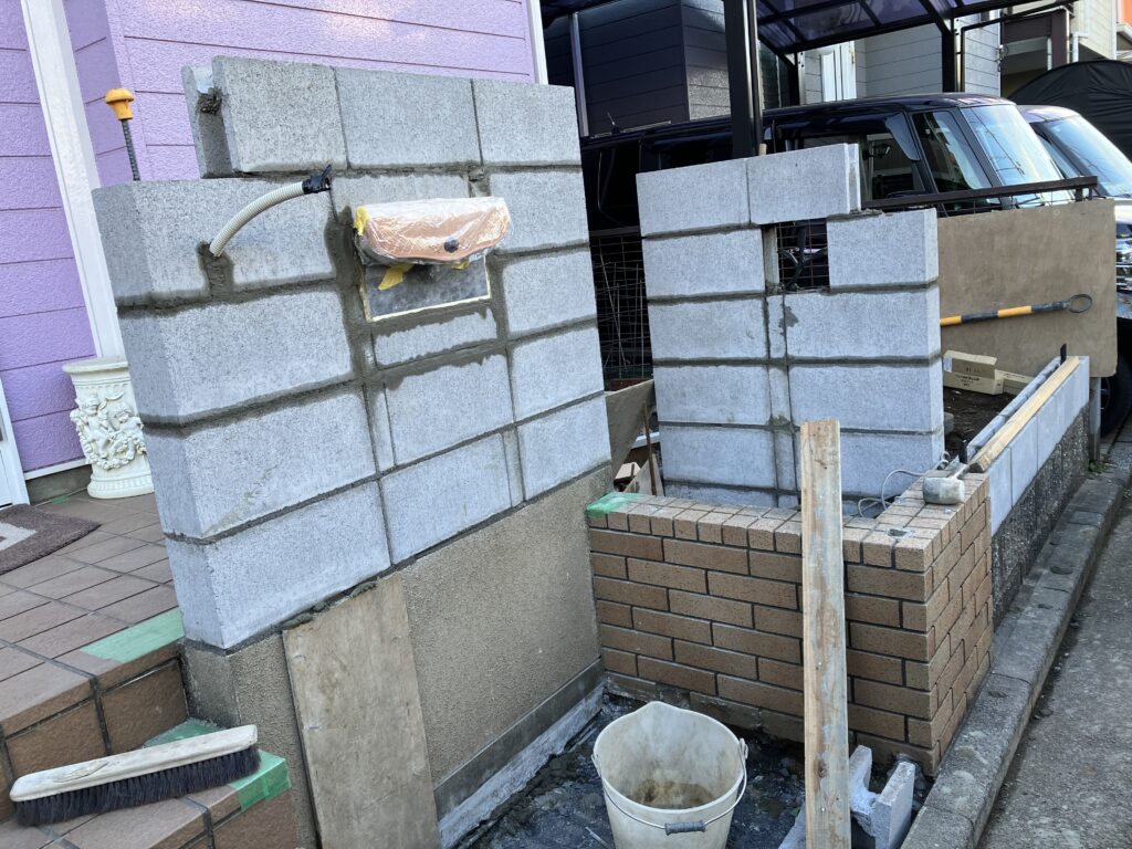 一部既存部と併わせ使い易い門柱造りを進めます