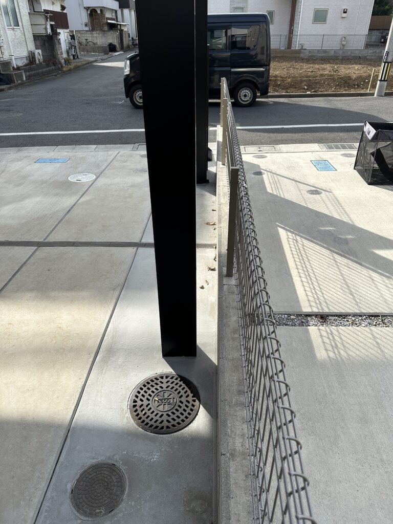 既存のコンクリートには将来カーポートの柱を建てる為のスペースが空いていました
