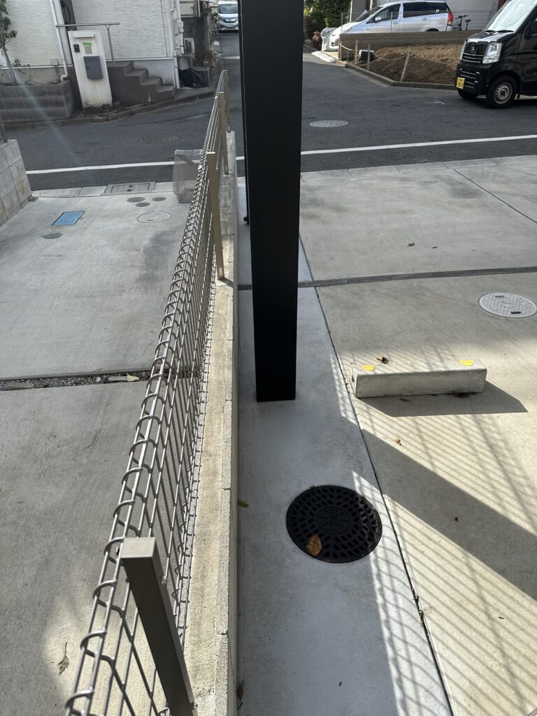 両サイド共にカーポート柱は境界ブロックより少し離してあります
