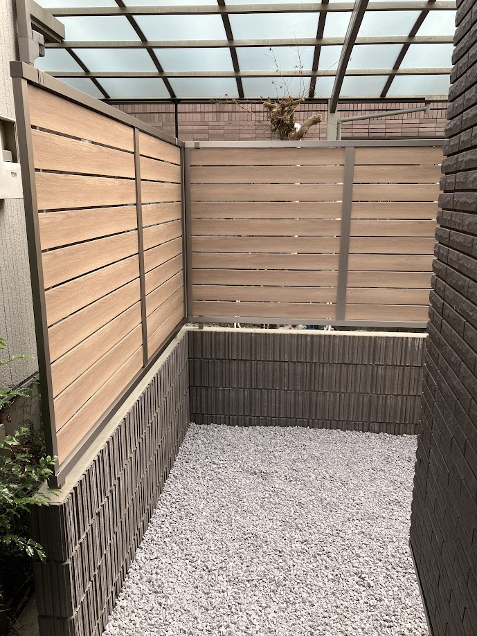 折り返し部にはL字にブロック+フェンスにする事でよりプライベート空間を演出できます